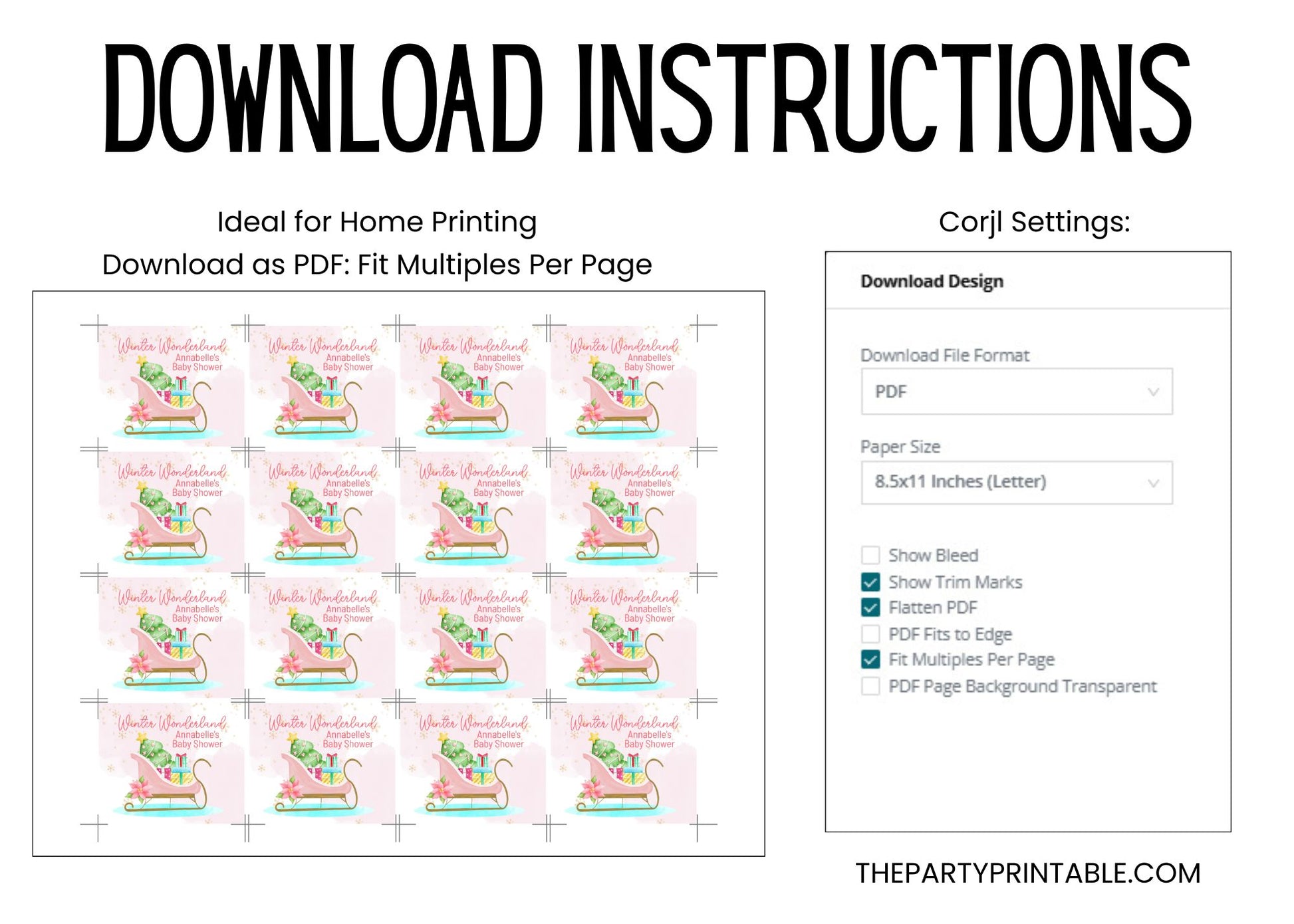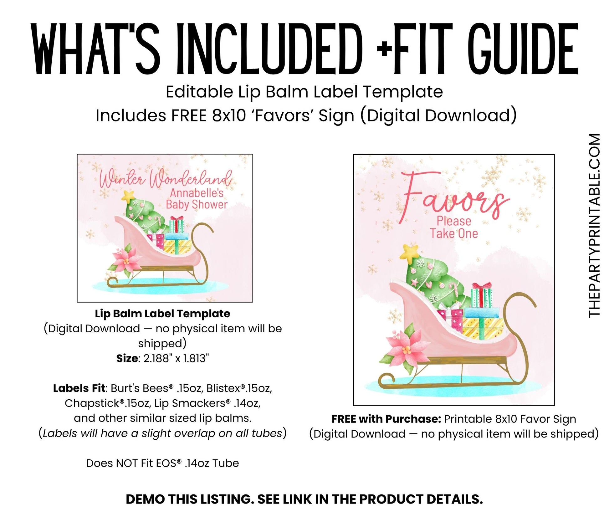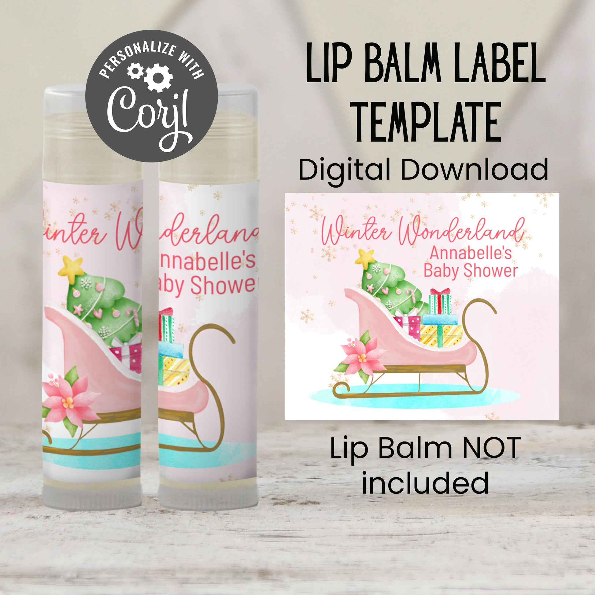 Pink Sleigh Baby Shower Lip Balm Label Template: Winter Wonderland Favor (Digital Download)