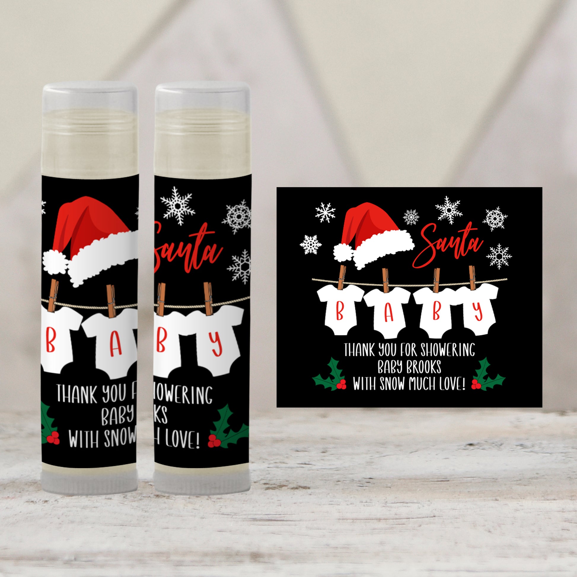 Santa Baby Christmas Baby Shower Favors Lip Balm: Gender Reveal Guest Gift