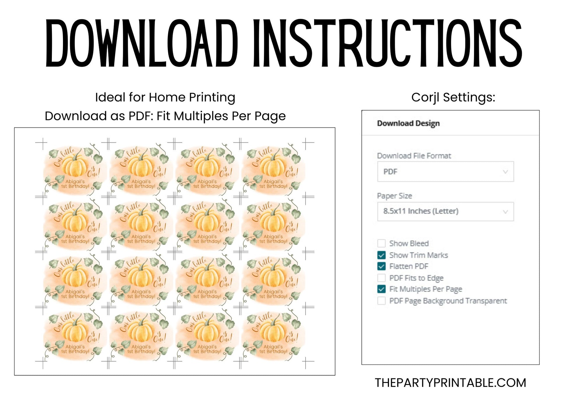 Celebrate your little one’s first birthday with this Our Little Pumpkin Is One lip balm label template! Featuring a sweet fall pumpkin design with rustic autumn colors, this editable template is perfect for creating chapstick favors for your child’s first birthday or seasonal celebration. You’ll edit the labels in Corjl right in your browser—no software needed! Once finished, simply download your file and print at home or with your favorite print shop. (See specs below.)