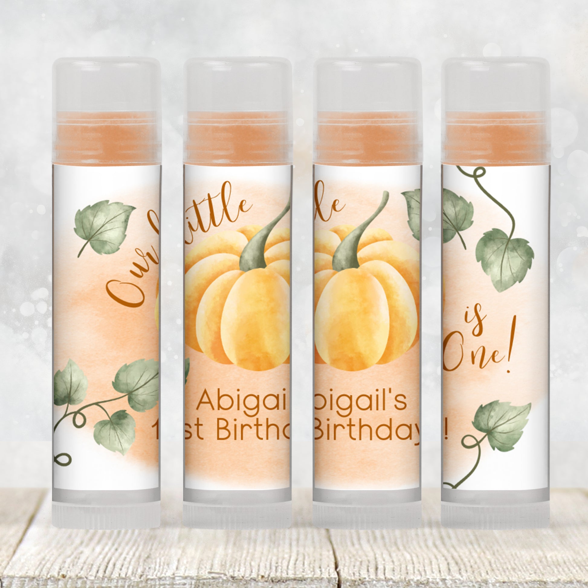 Our Little Pumpkin Is One Lip Balm Label Template: Fall 1st Birthday Favor (Digital Download)