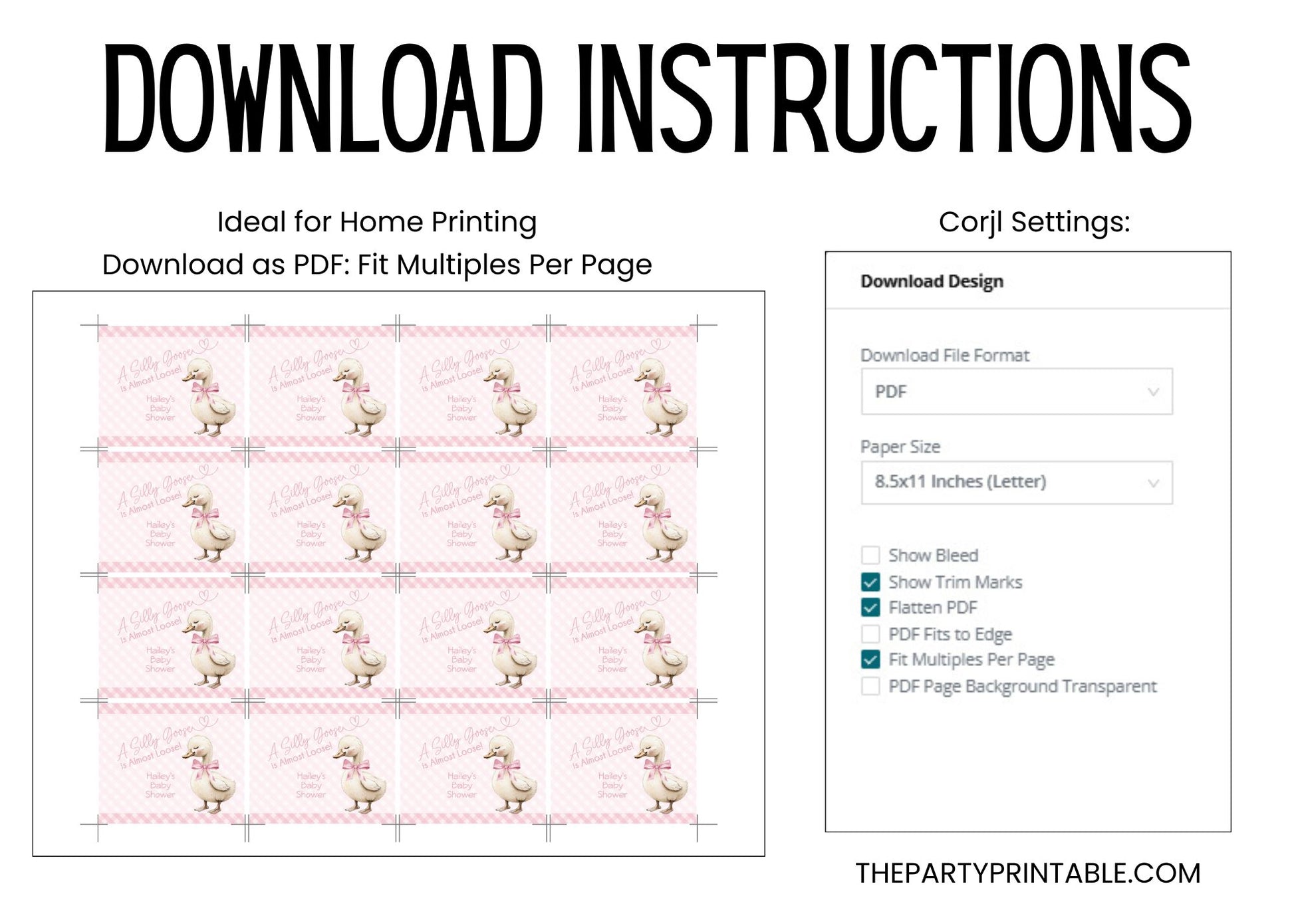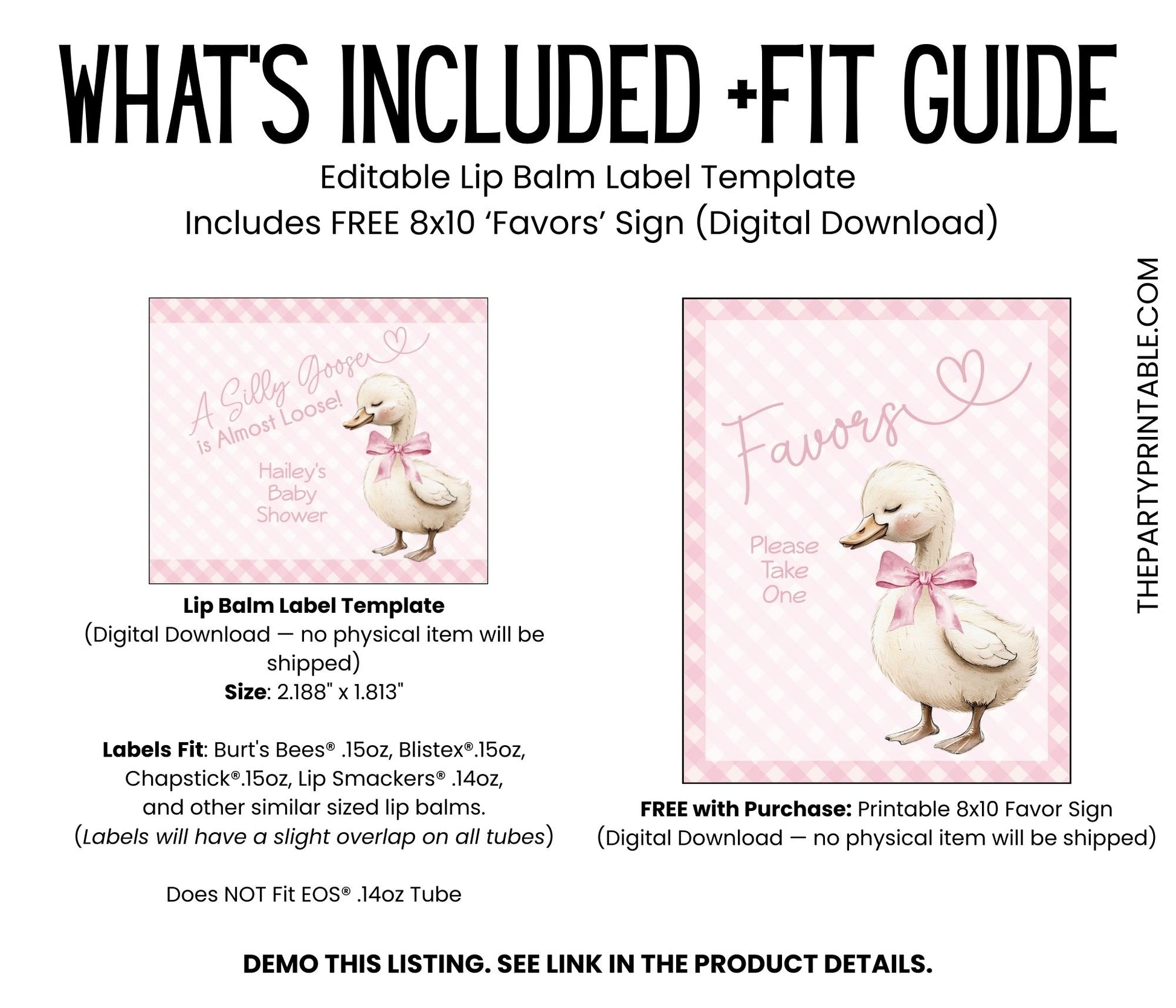 Pink Silly Goose Is Almost Loose Baby Shower Chapstick Label Template: Girl Favor (Digital Download)