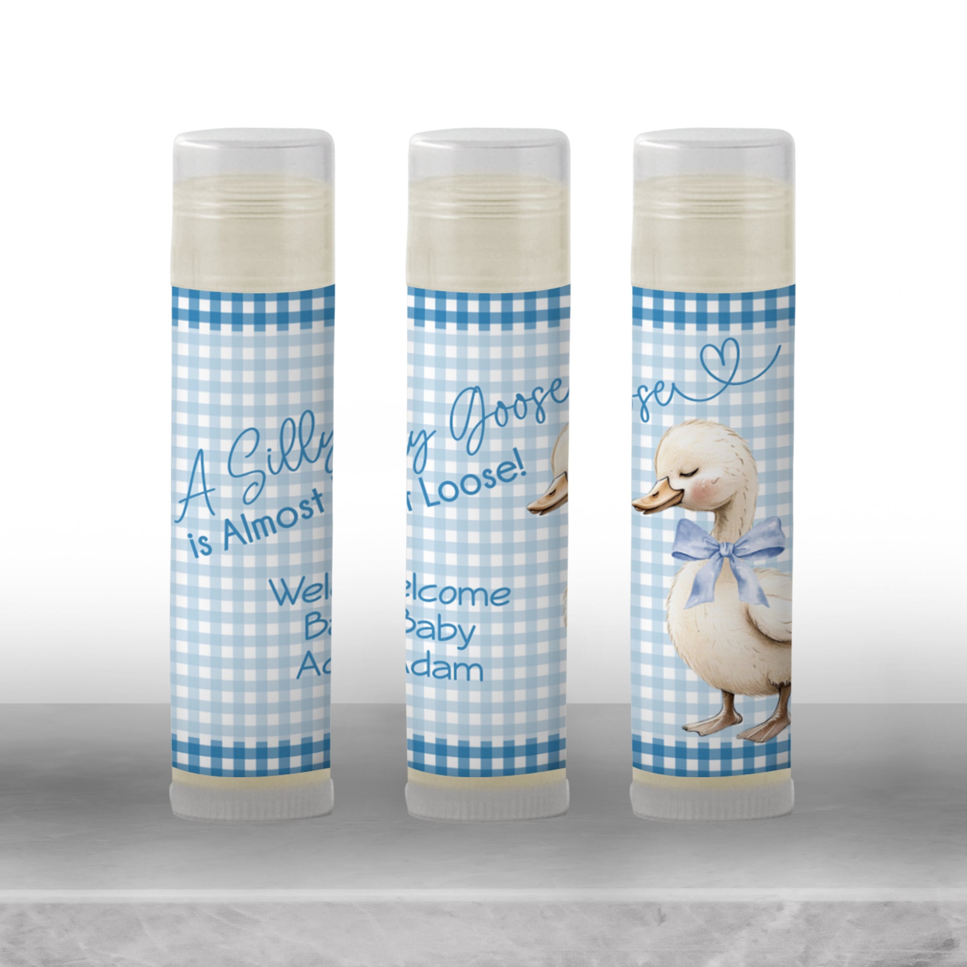 Blue Silly Goose Is Almost Loose Baby Shower Chapstick Favors: Boy Lip Balm Guest Gift