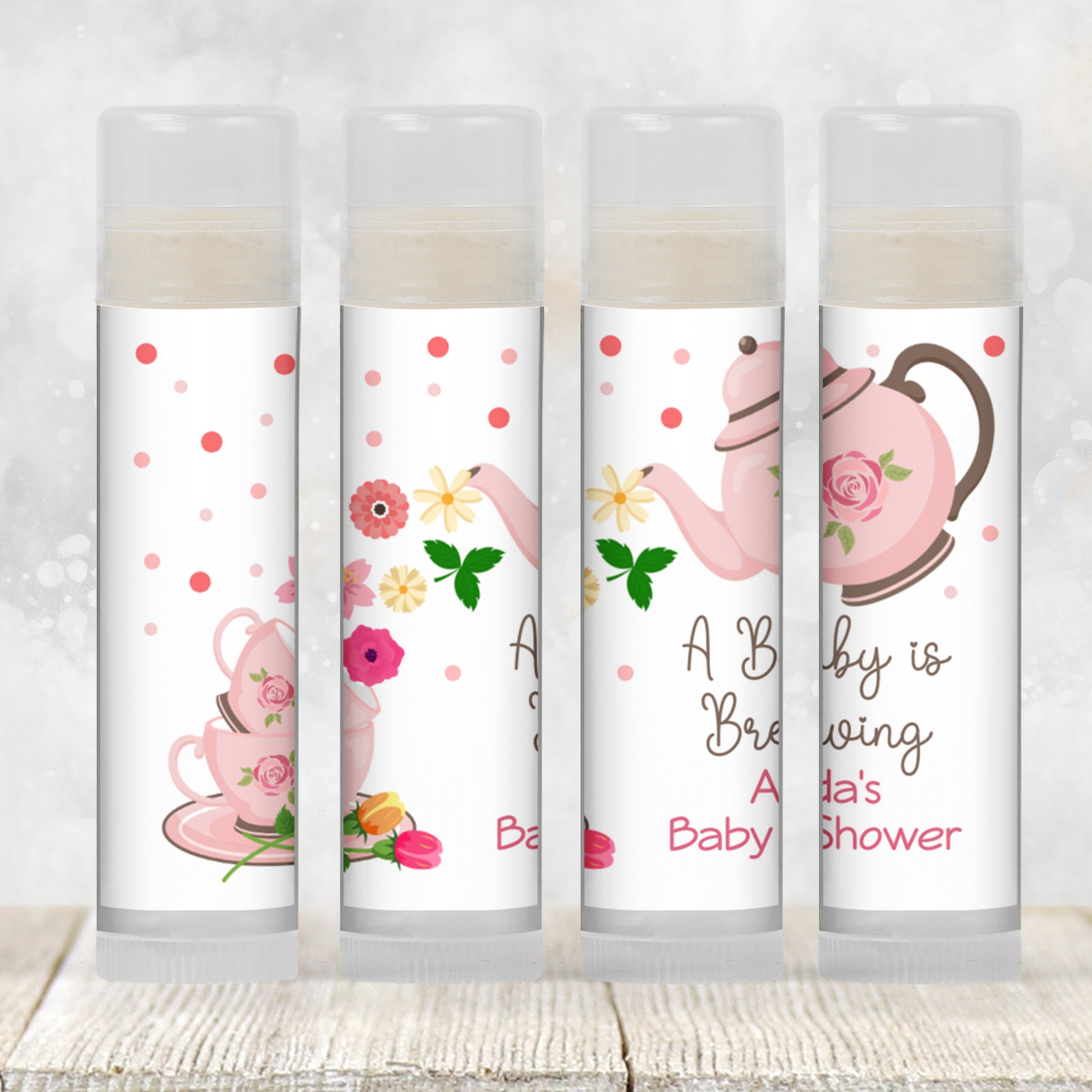 Tea Party Baby Shower Lip Balm Favors: A Baby is Brewing Brunch Guest Gift