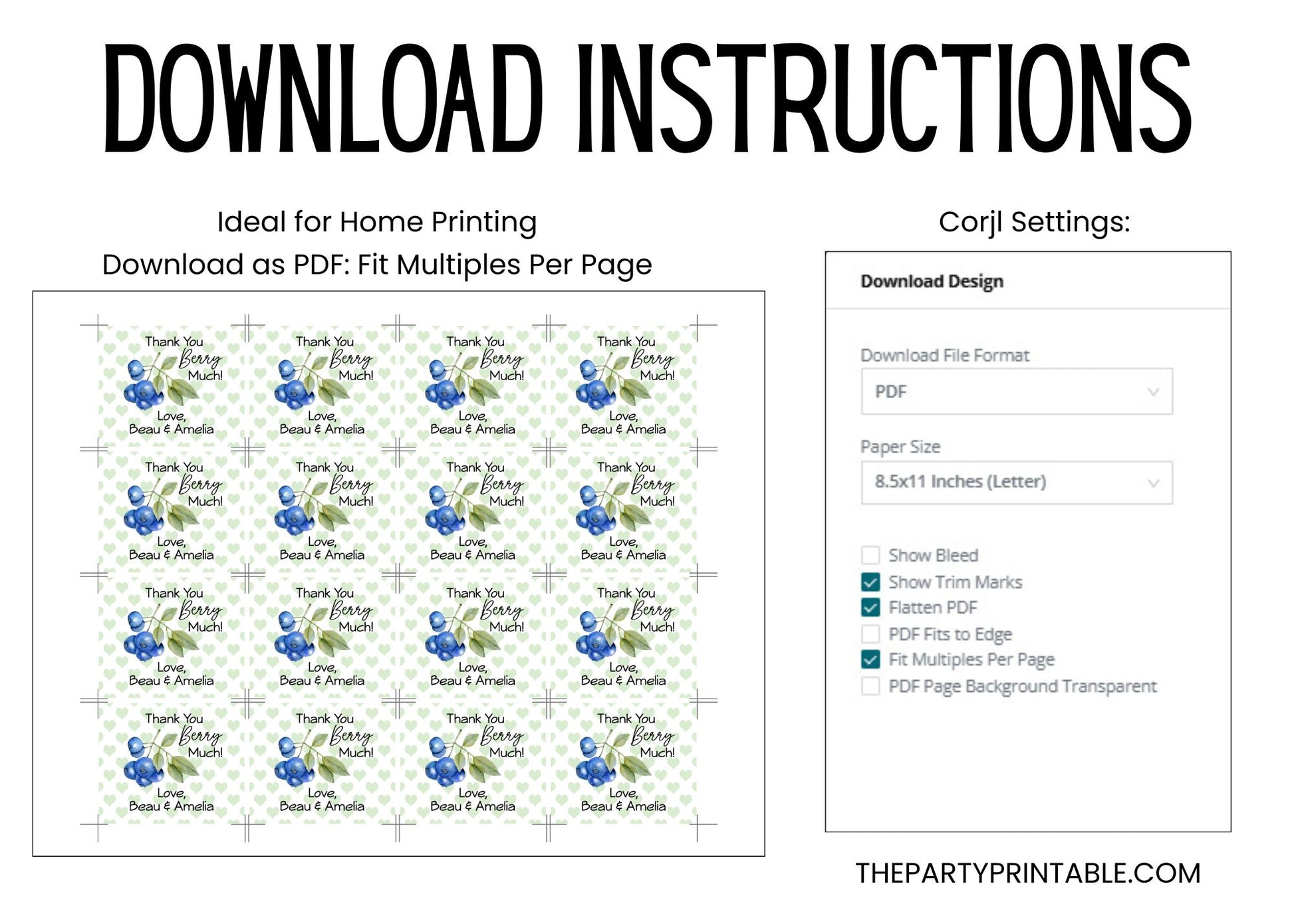 Celebrate with this Blueberry Baby Shower lip balm label template! Featuring a fresh blueberry theme, this editable design is perfect for a boy’s summer baby shower or 1st birthday. Create chapstick favors that are both sweet and practical. You’ll edit the labels in Corjl right in your browser—no software needed! Once finished, simply download your file and print at home or with your favorite print shop. (See specs below.)