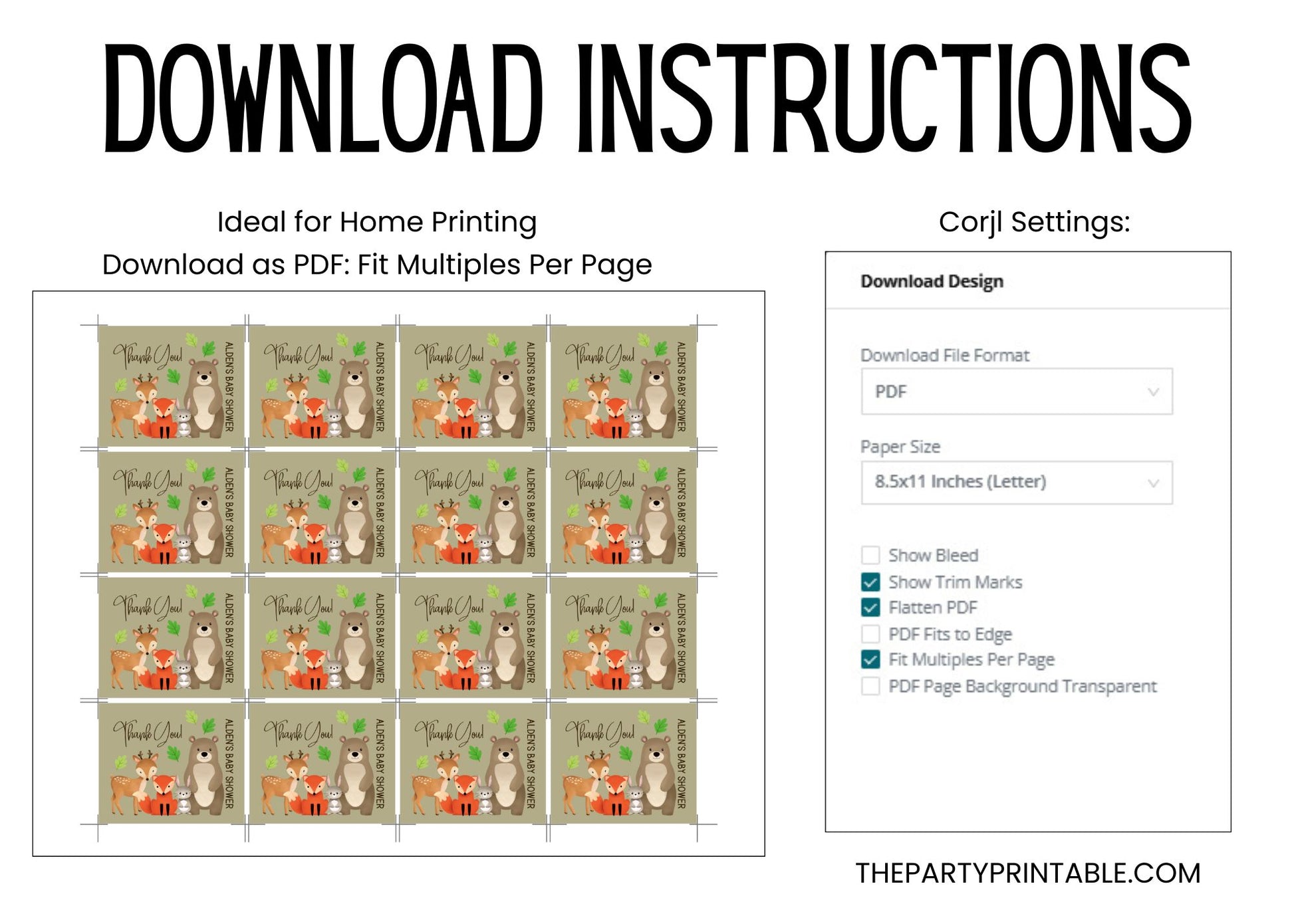 Woodland Baby Shower Lip Balm Label Template: Forest Animals Bear Fox Deer Bunny (Digital Download)
