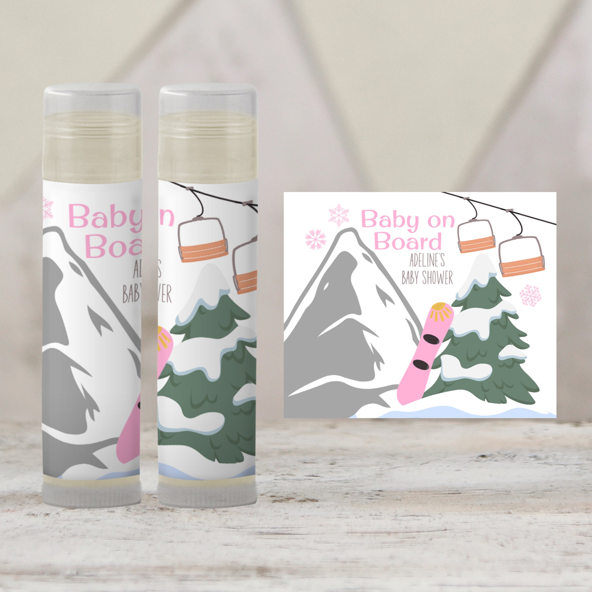 Baby on Board Snowboard Chapstick Favors: Pink Winter Girl Shower Gift