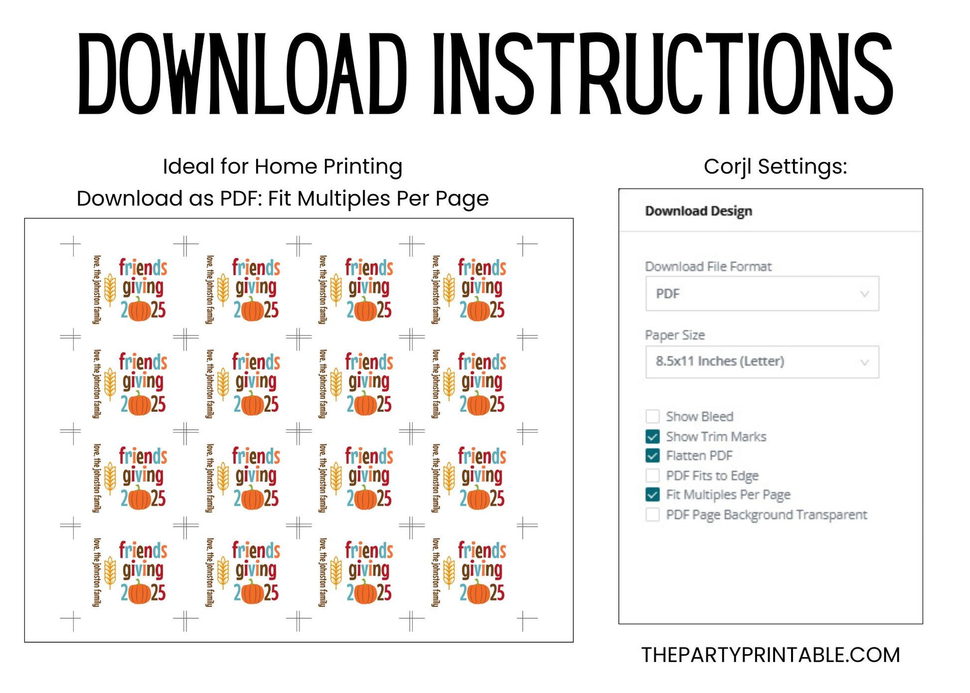 Add a personal touch to your celebration with this Friendsgiving lip balm label template. Featuring a festive design, this editable template is perfect for creating chapstick favors for Friendsgiving dinner, brunch, or fall gatherings with friends. You’ll edit the labels in Corjl right in your browser—no software needed! Once finished, simply download your file and print at home or with your favorite print shop. (See specs below.)