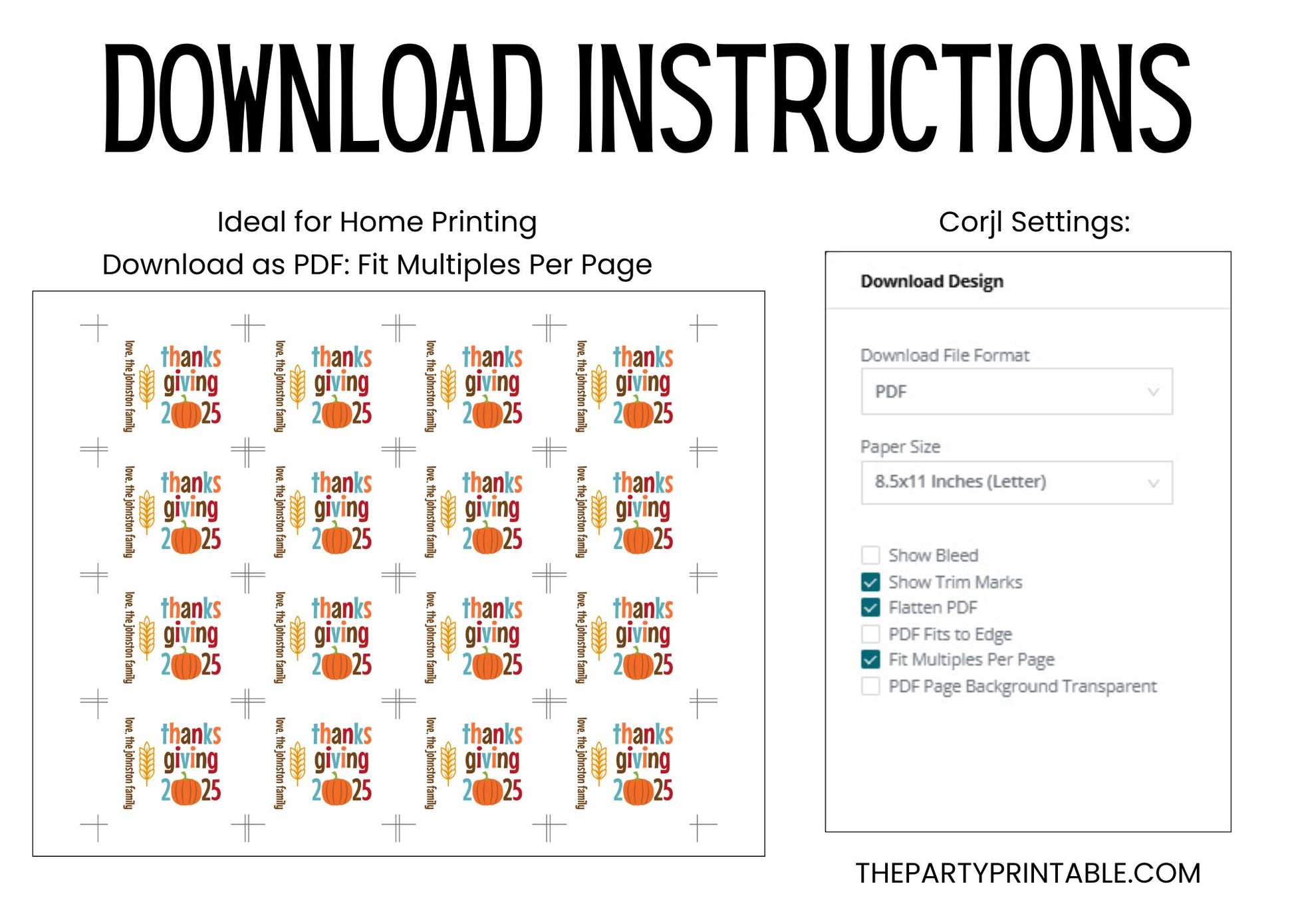 Add a thoughtful touch to your holiday table with this Thanksgiving lip balm label template. Featuring a festive seasonal design, this editable template is perfect for creating chapstick favors to thank your guests at Thanksgiving dinner. You’ll edit the labels in Corjl right in your browser—no software needed! Once finished, simply download your file and print at home or with your favorite print shop. (See specs below.)