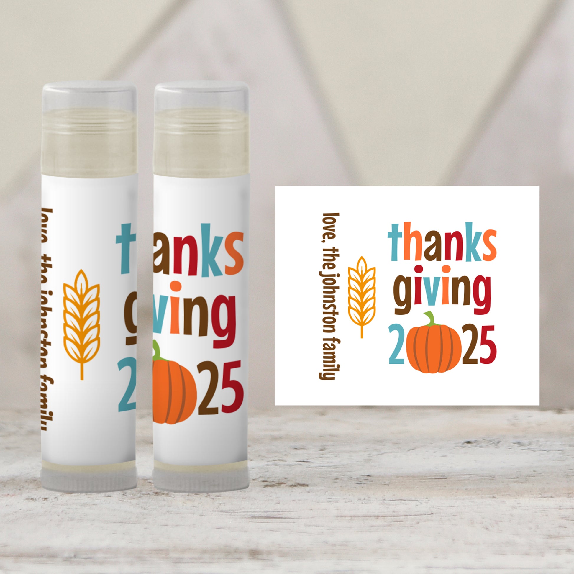 Thanksgiving Lip Balm Favors: Personalized Chapstick Guest Gift for Holiday Dinner Table