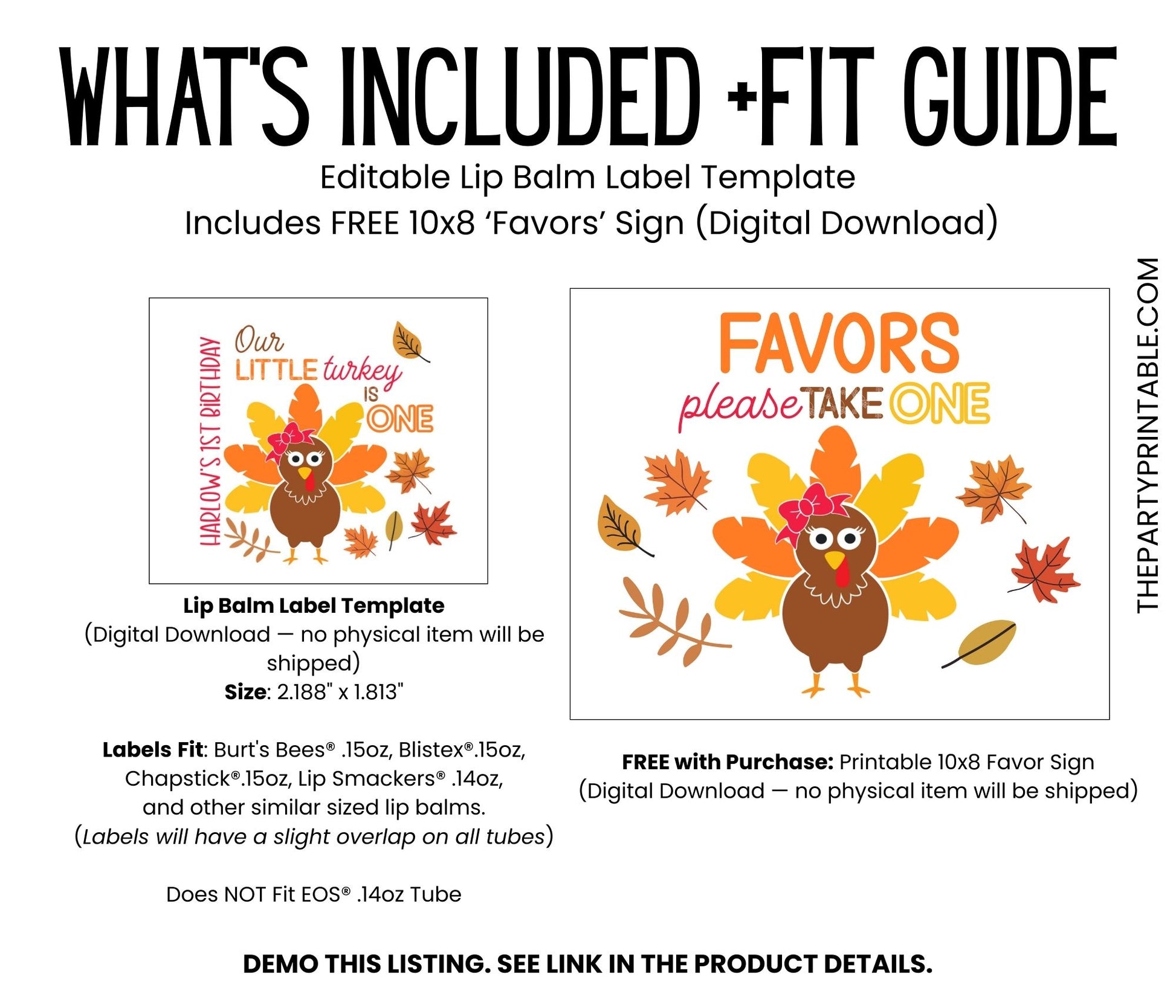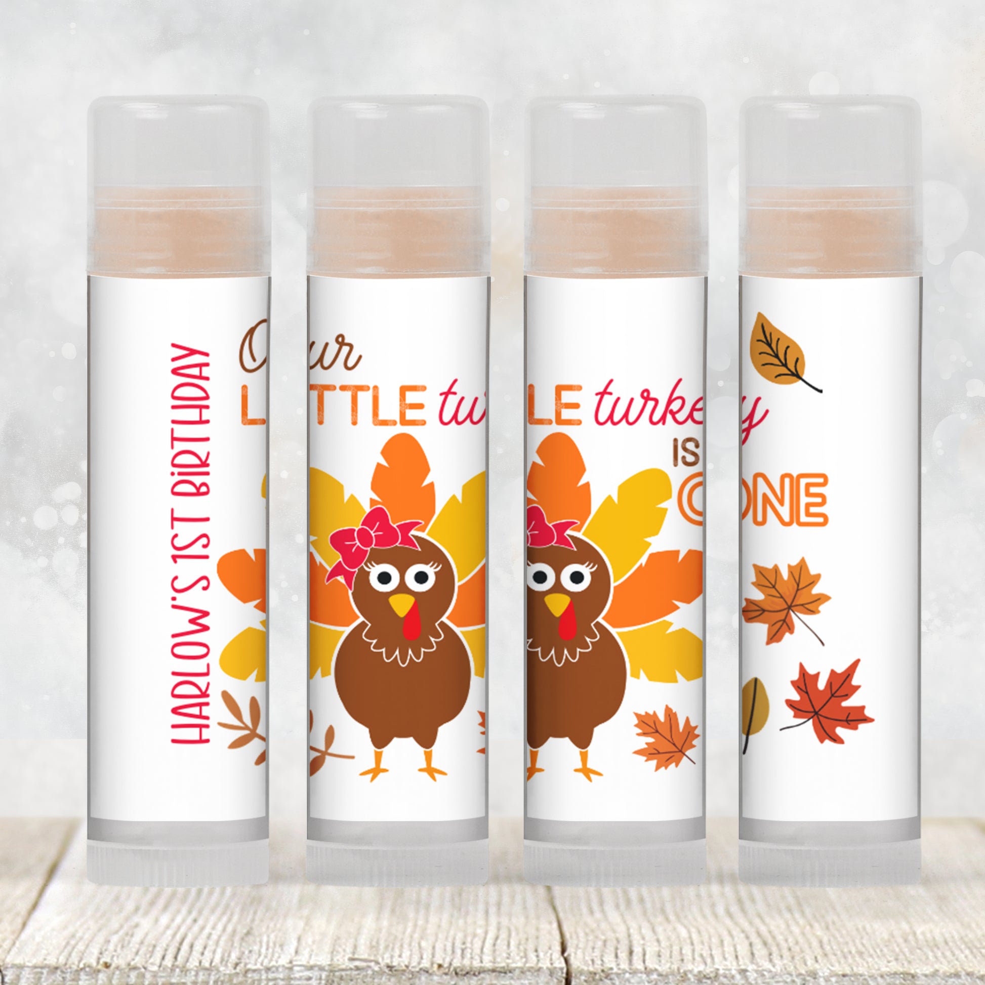 Thanksgiving Birthday Lip Balm Label Template: Our Little Turkey (Digital Download)