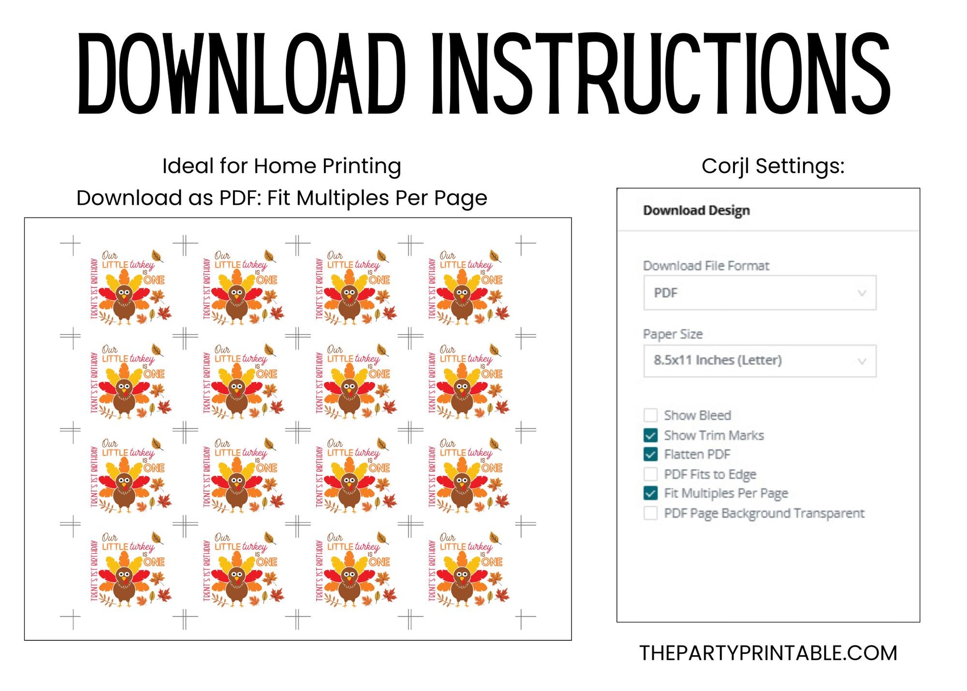 Celebrate your little turkey’s big milestone with this Our Little Turkey Is One lip balm label template! Featuring a festive fall design, this editable template is perfect for a boy’s Thanksgiving-themed 1st birthday party. Create sweet and practical chapstick favors that guests will love. Edit the labels right in Corjl—no software needed. Personalize the text, preview instantly, then download and print at home or with your favorite print shop. (See specs below.)