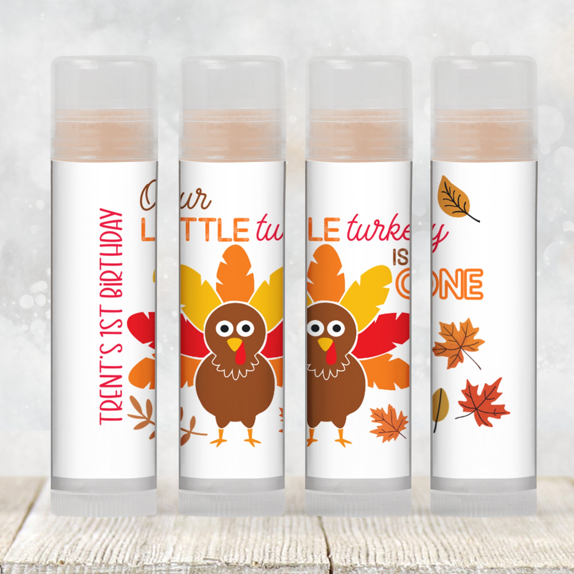 Turkey 1st Birthday Lip Balm Label Template: Boy Thanksgiving Favor (Digital Download)