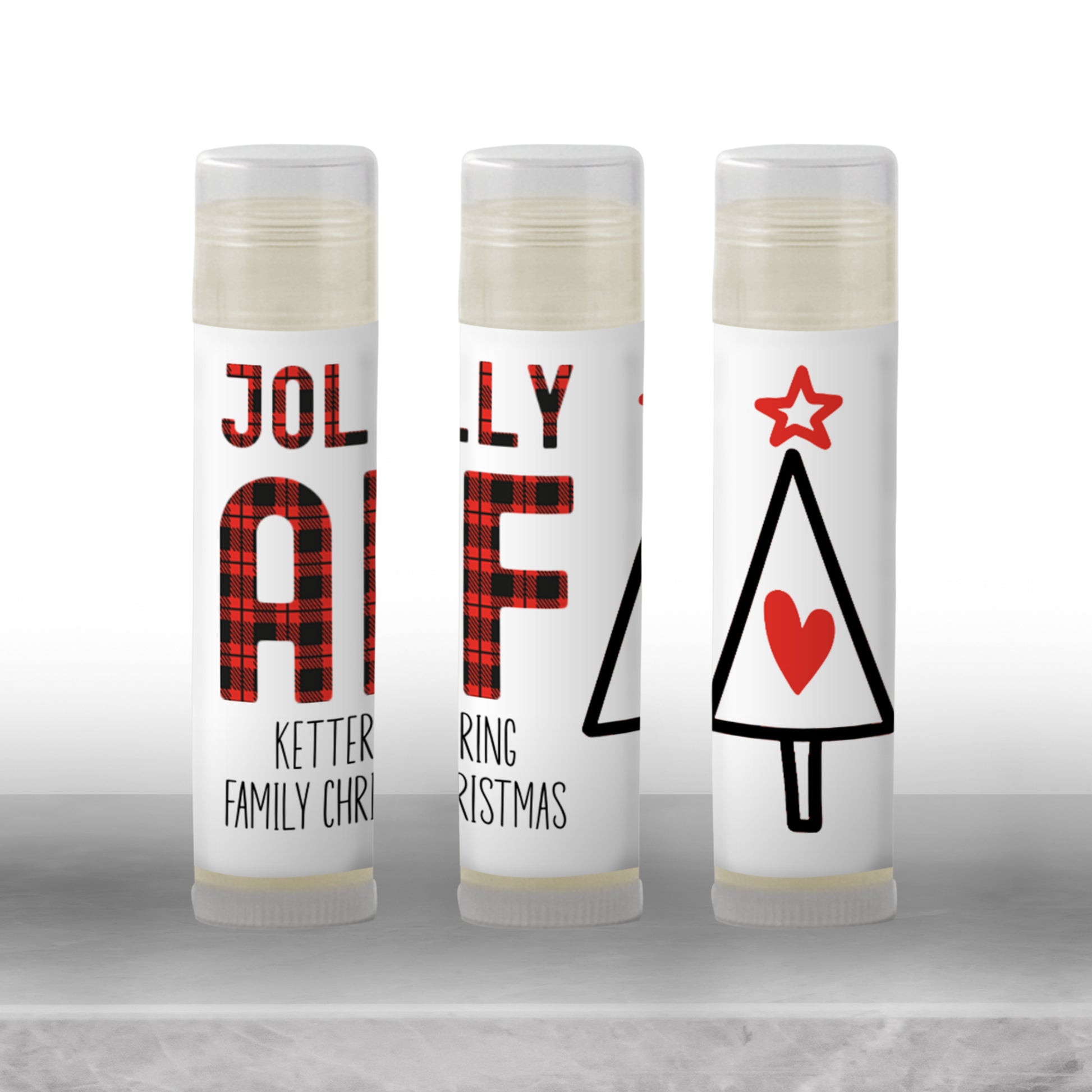 Jolly AF Christmas Party Favors Lip Balm: Buffalo Plaid Holiday Guest Gift